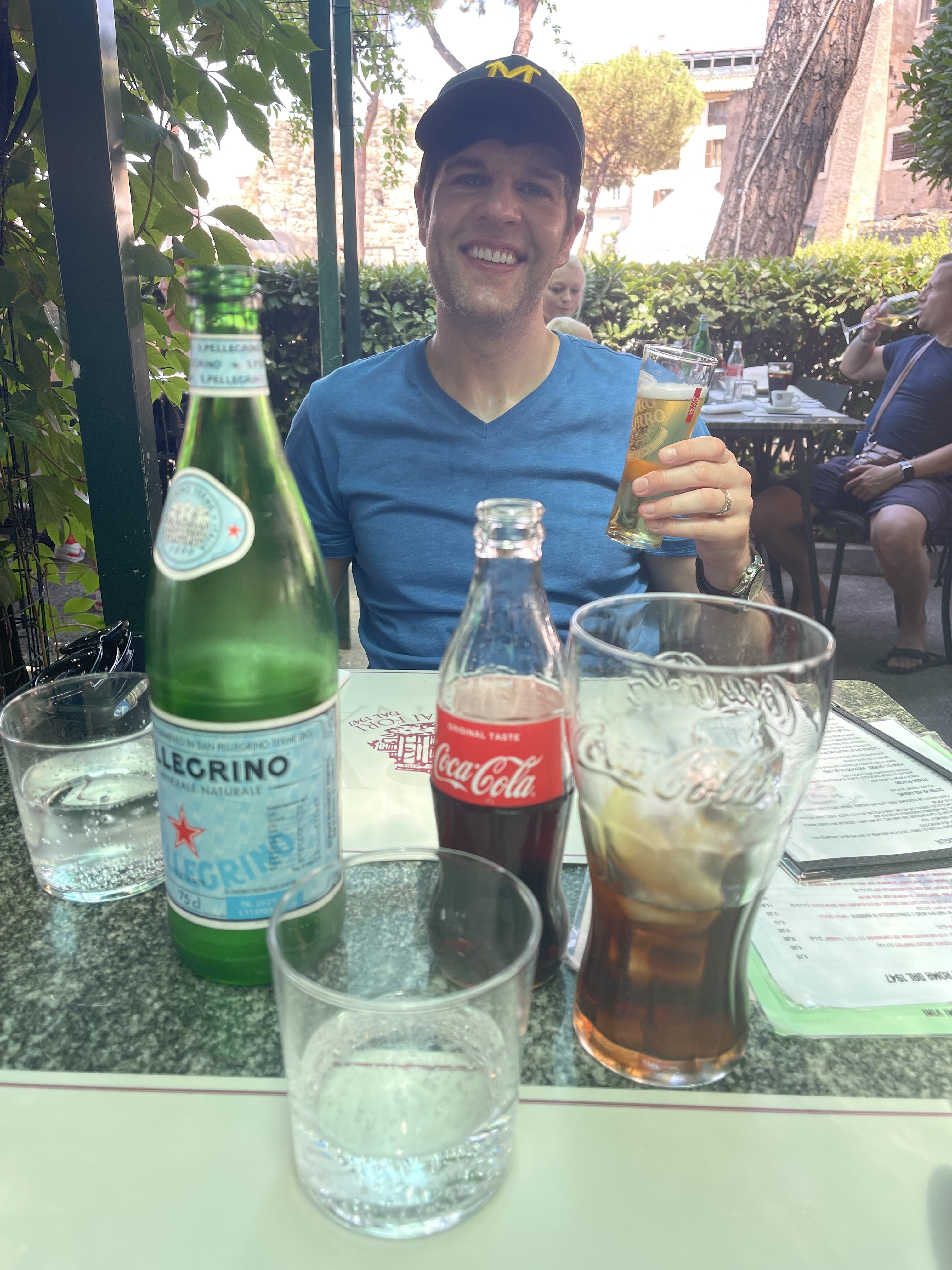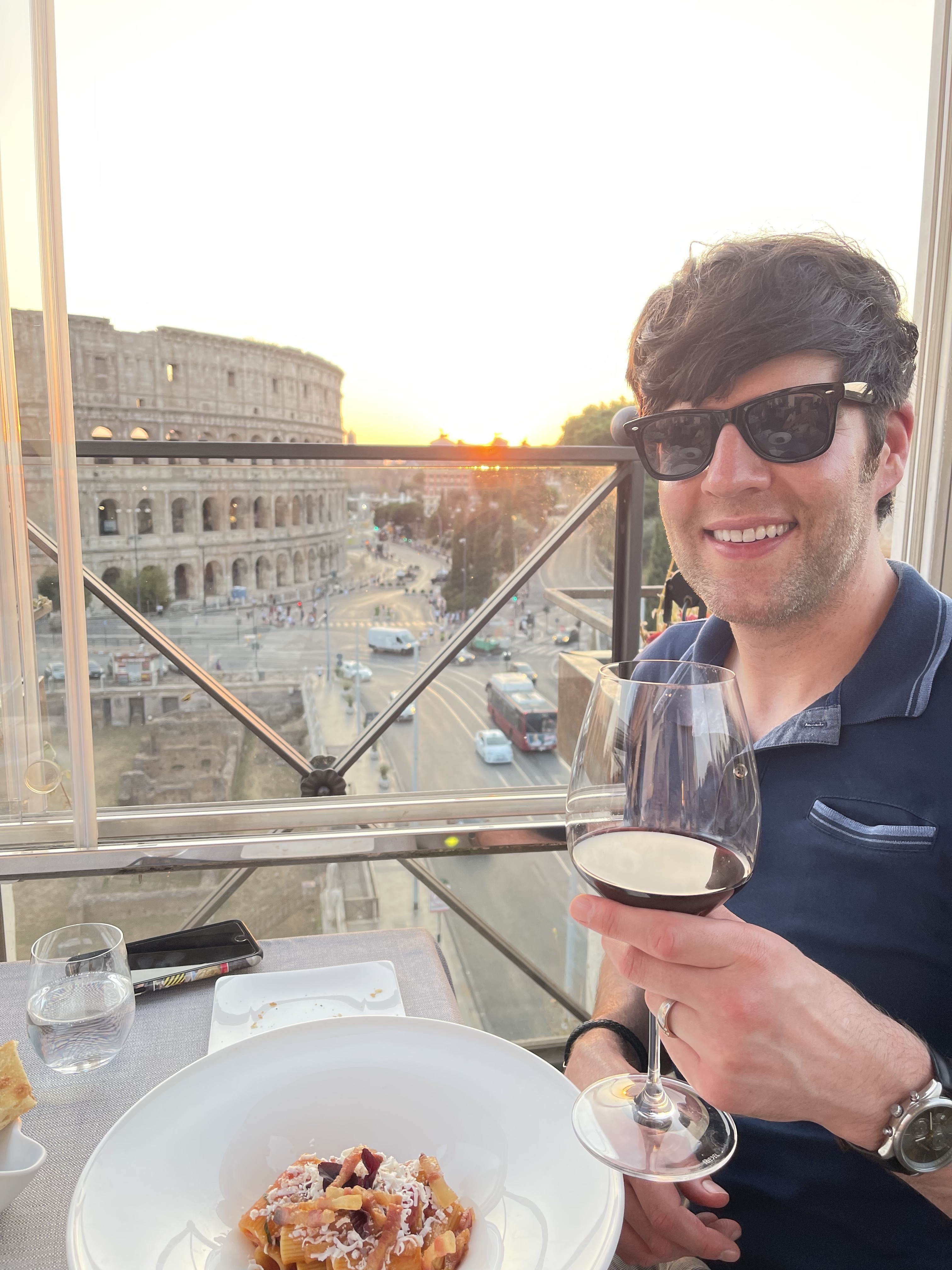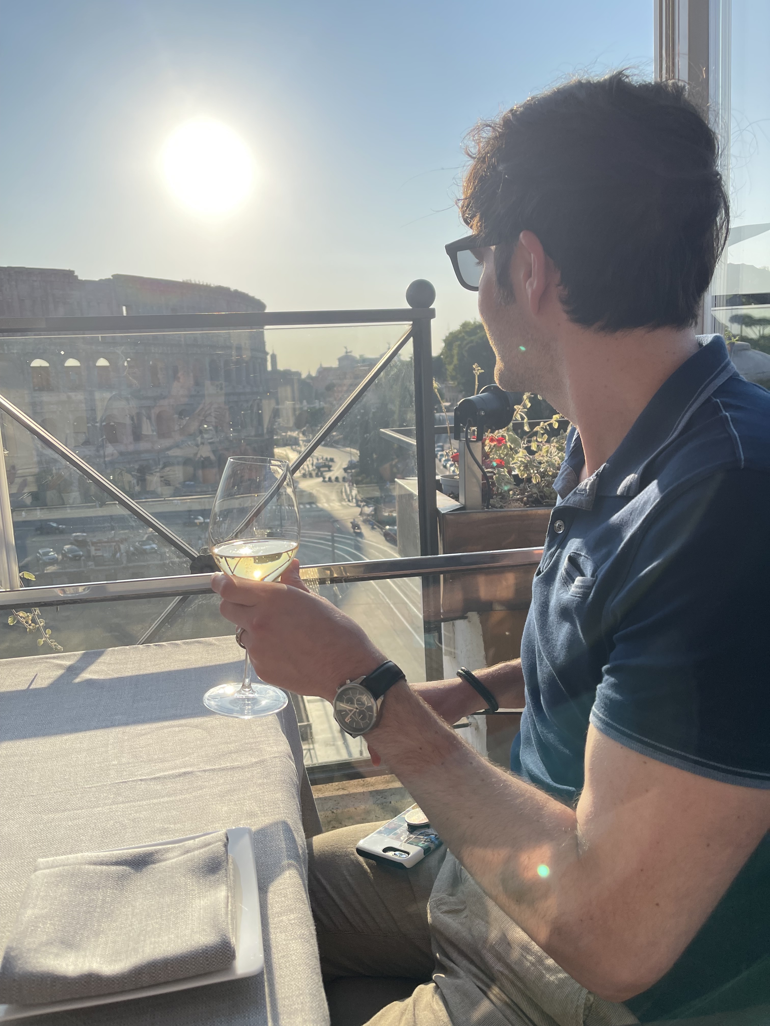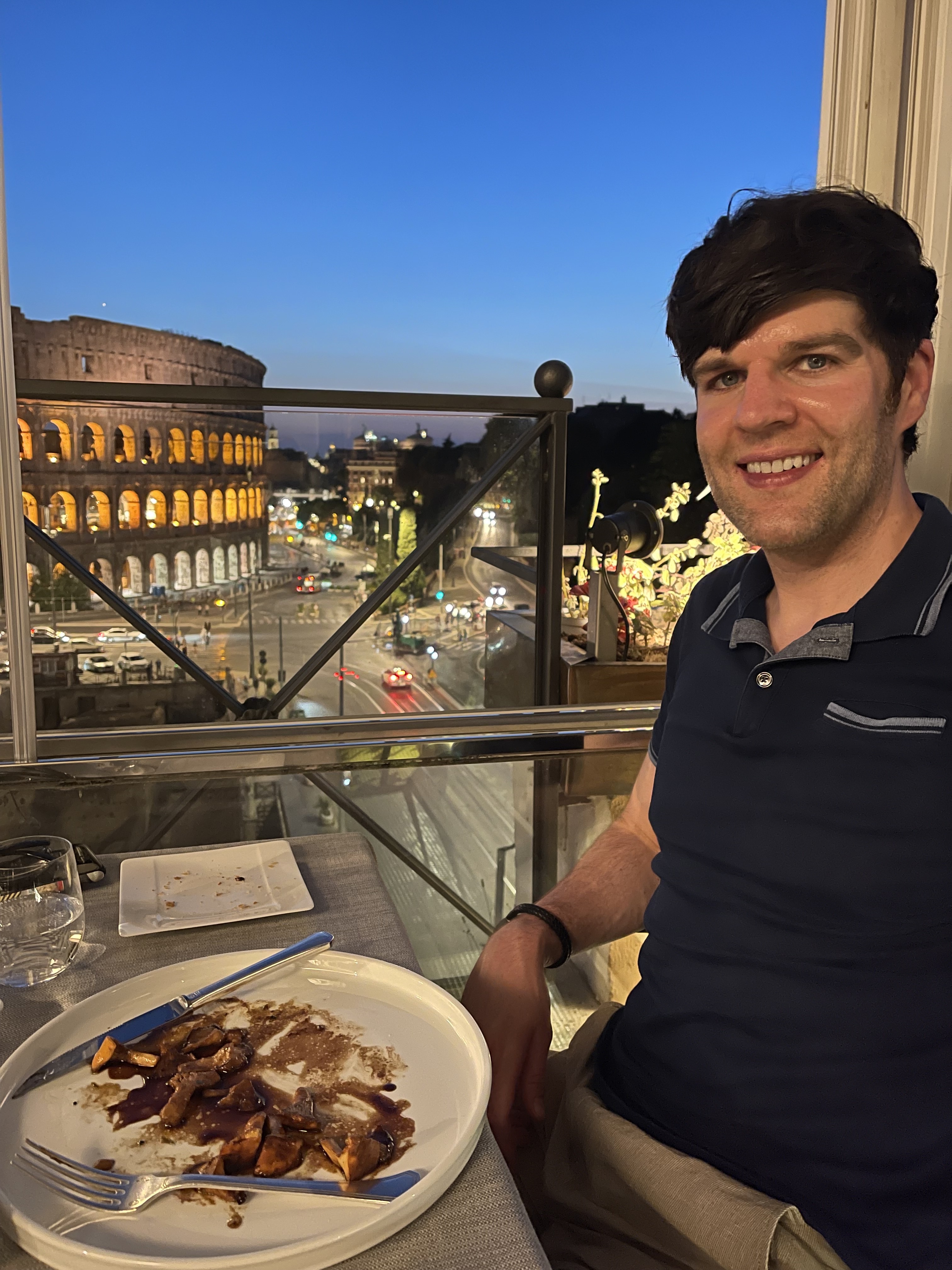 We did have amazing seats and the food was delicious!! It is a Michelin star restaurant so if you can afford it, it is worth the splurge but if you can’t no worries. There were plenty of restaurants with a similar view surrounding the Coliseum so just do your research. We always plan for a nice “fancy” dinner on all of our trips but we justify it with it only being one. We love to eat but wouldn’t consider ourselves foodies. Dan loves a good view and I just love seeing him love the view and food. He can be a picky eater so I always worry what he is going to eat, but to my surprise he ordered a steak! And to my even bigger shock he loved it!! He doesn’t like any red in his meat (I know a sin, but alas I can’t change his mind) so he rarely orders a steak because he feels embarrassed to order it well done but the waiter was so nice and friendly, Dan asked for a substitution and they happily said yes and made it to his liking. He is still raving about this steak and I am so so happy he loved it.