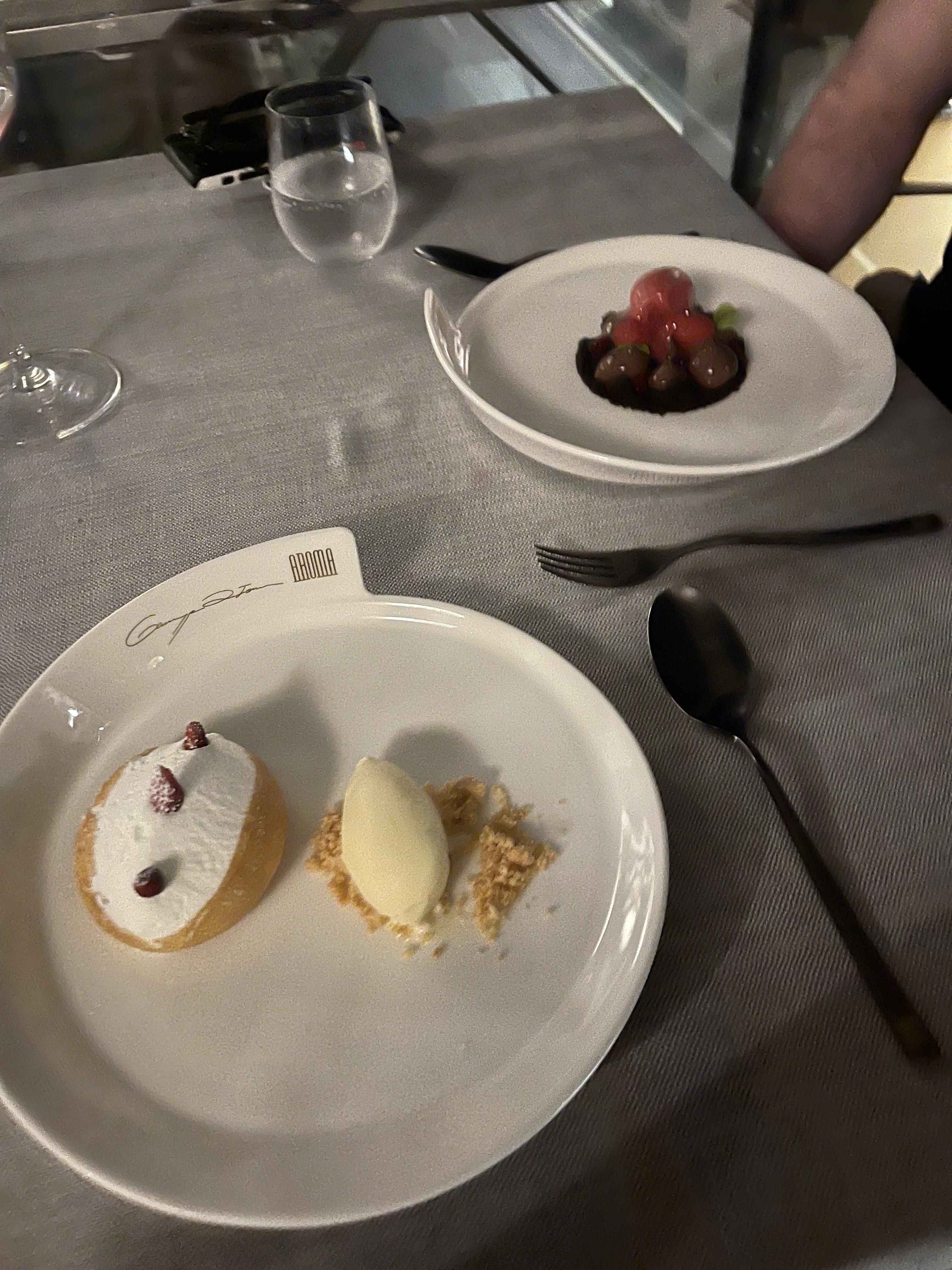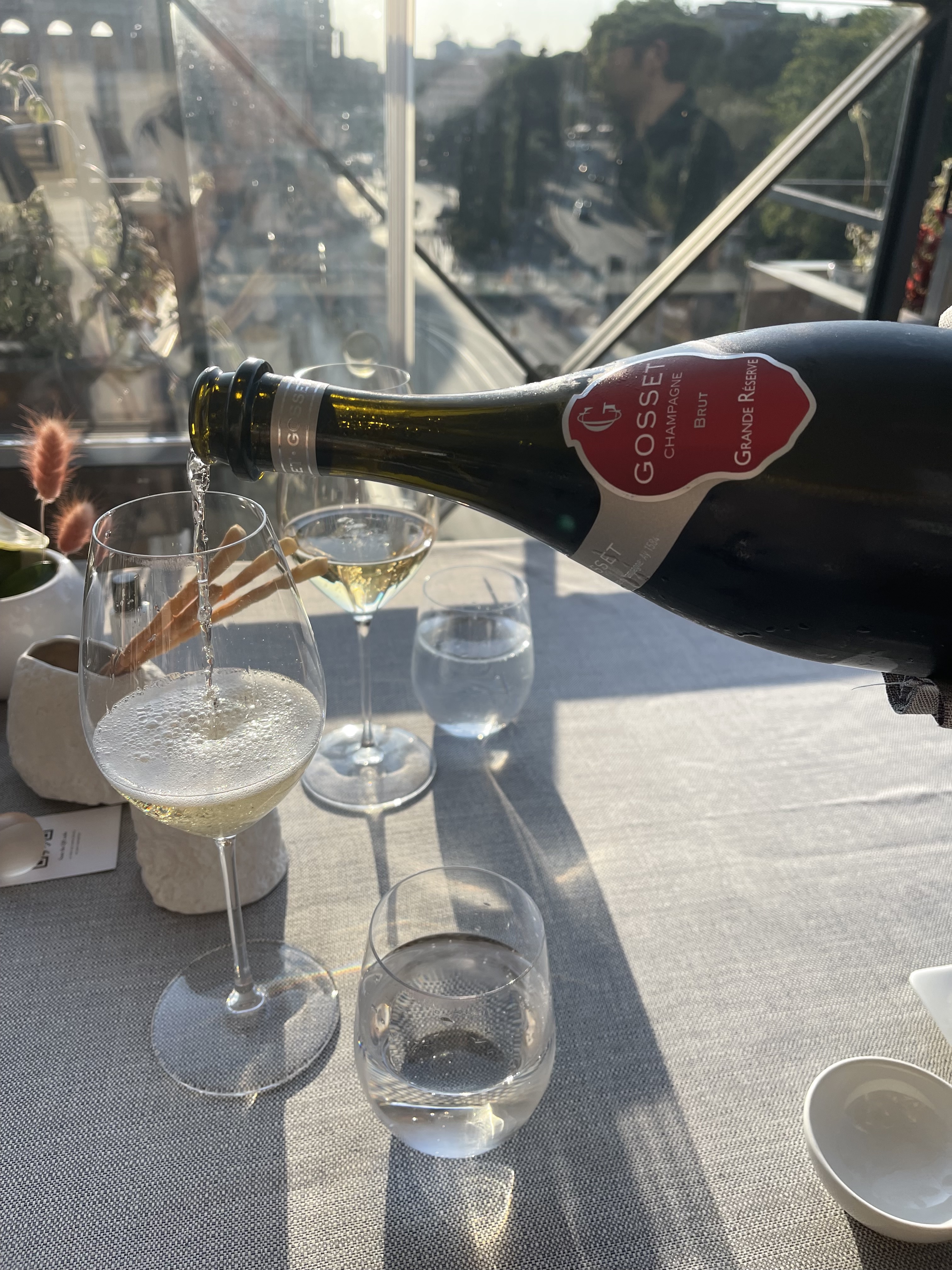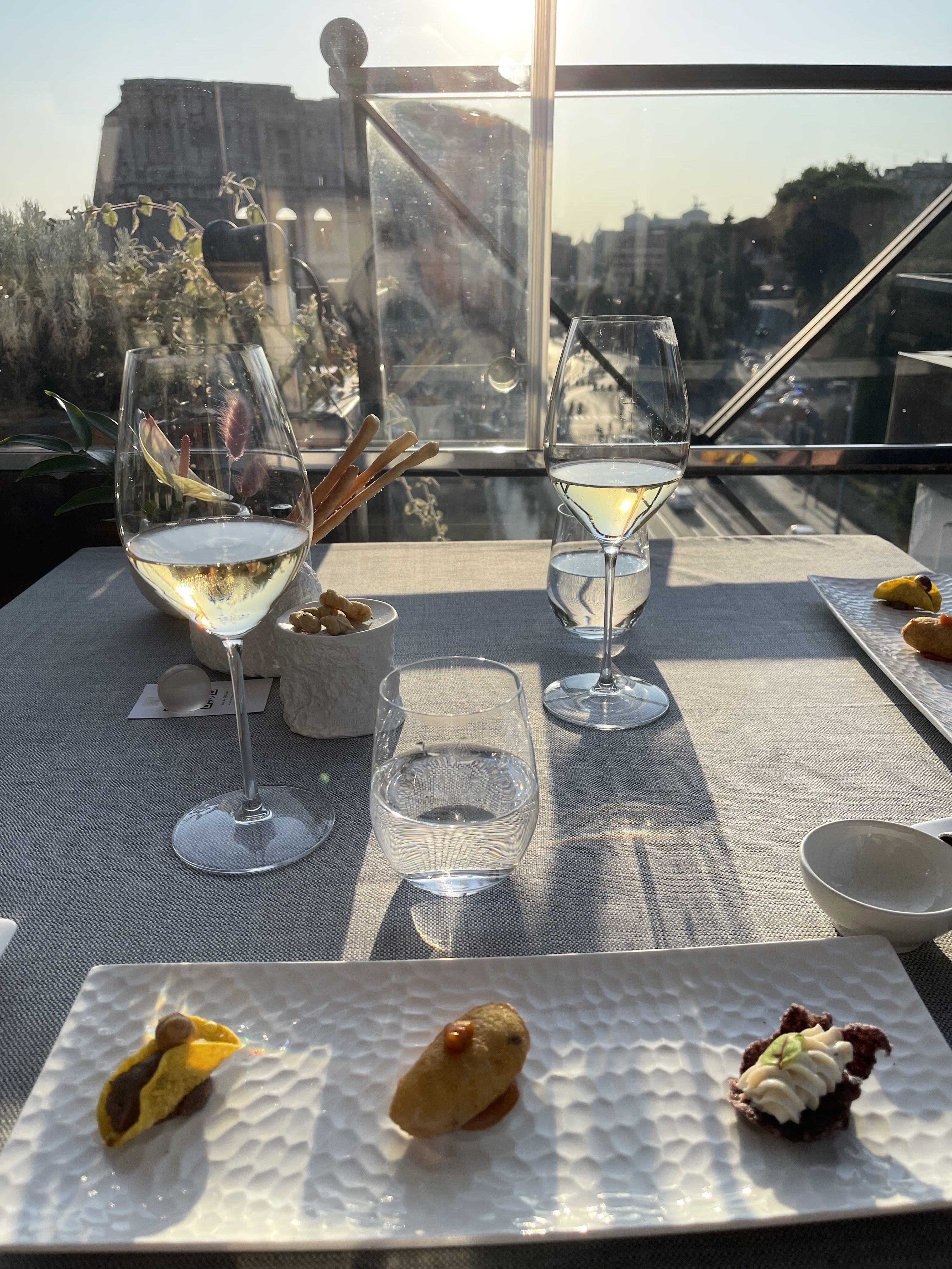 When we first got to the restaurant we did have a minor hiccup. I told them my name and the hostess tried seating us at the bar and said my reservation was the first floor bar and not the rooftop. I am very meticulous and paranoid so I had already emailed and had my Italian friend call to confirm my reservations and she didn’t believe me! Thank God I screen shot and save every email for my trips and even had the printouts in my purse and she immediately got flustered and apologized. I wouldn’t have cared if she had tact and said it to me in private but she said it in front of 3 other couples and I got embarrassed. She later came to our table and apologized again and told us someone had put it in the notes to seat us at the bar for free drinks and appetizer as we waited for our table as a special treat for celebrating there but she got confused. Who knows if that was true and as soon as we sat at our table Dan loved the view so my embarrassment went away just seeing how happy he was with the table. We did get free drinks and appetizers at our table so that was very nice.