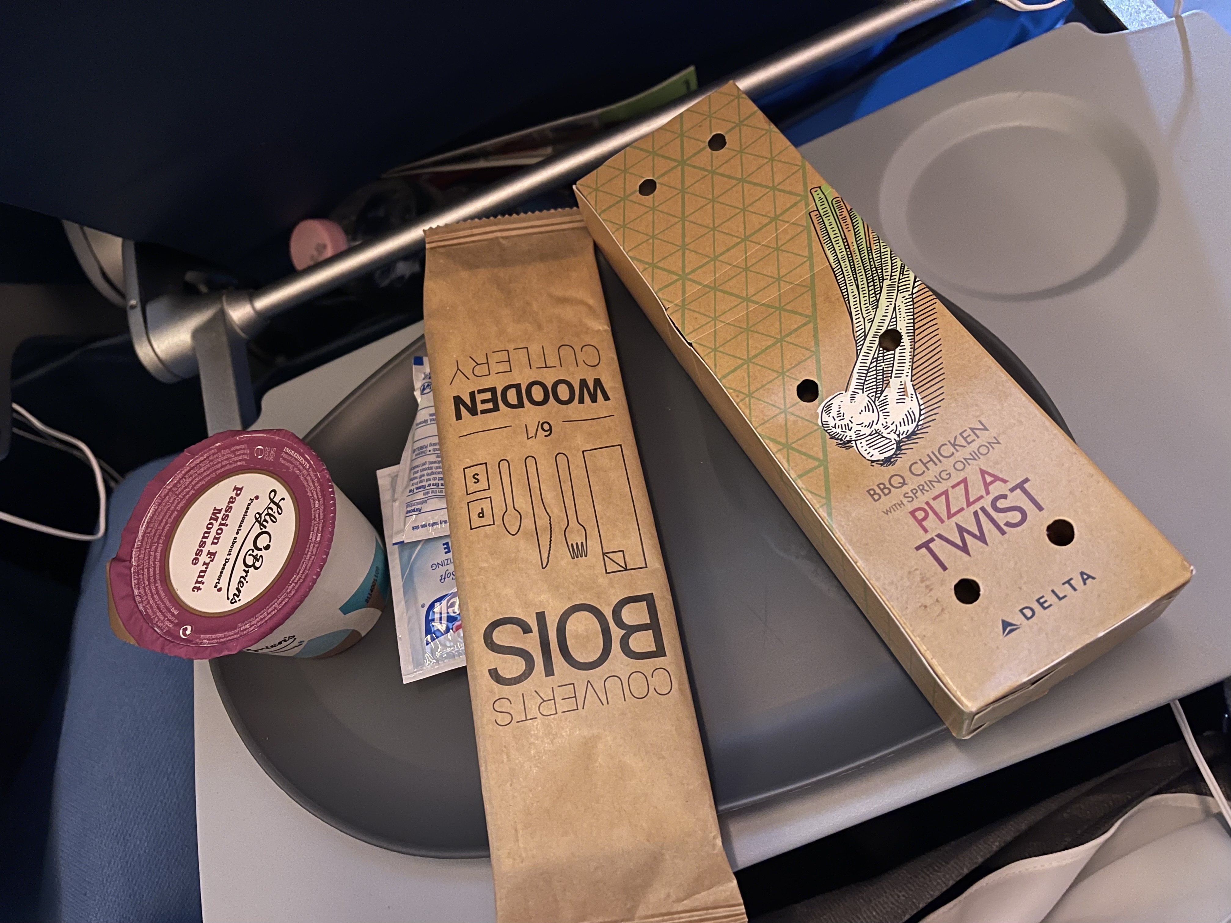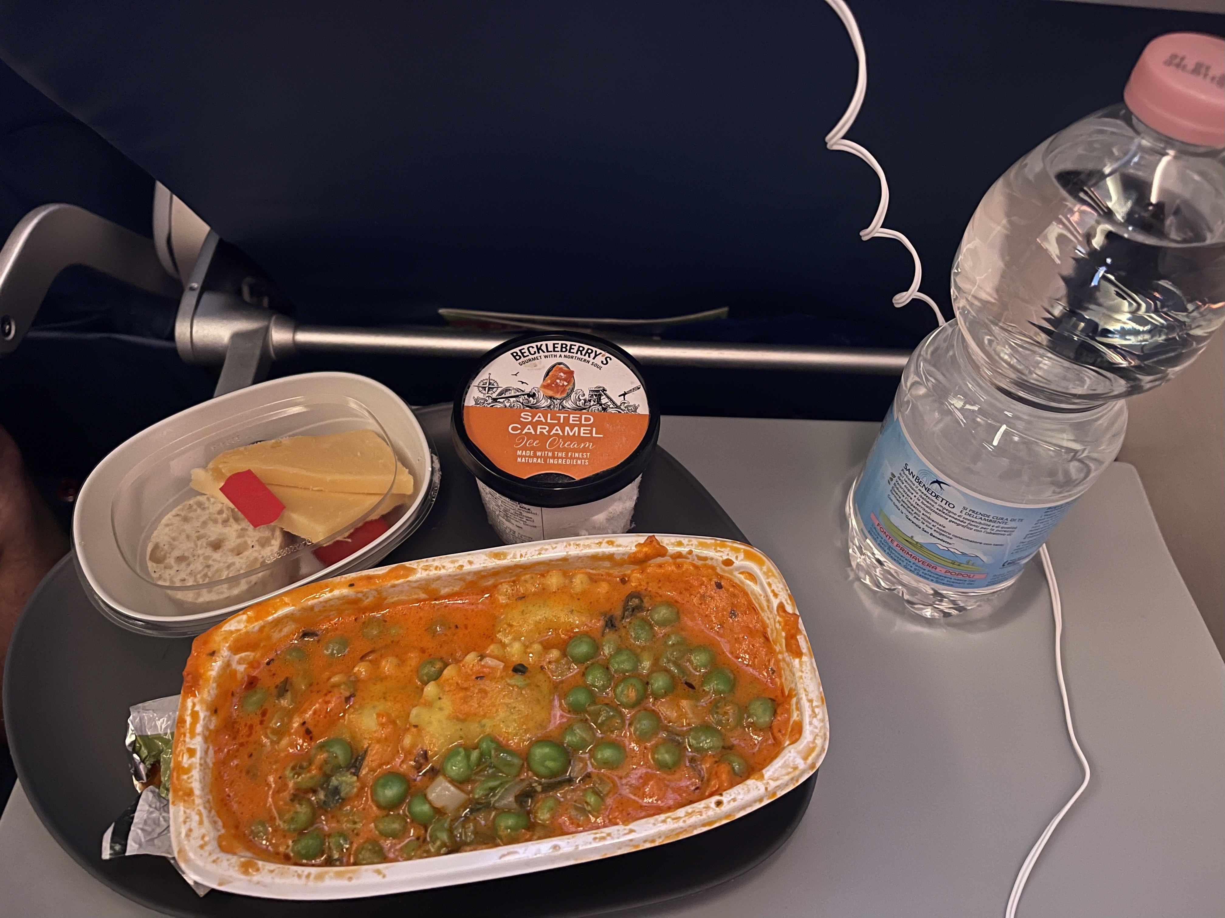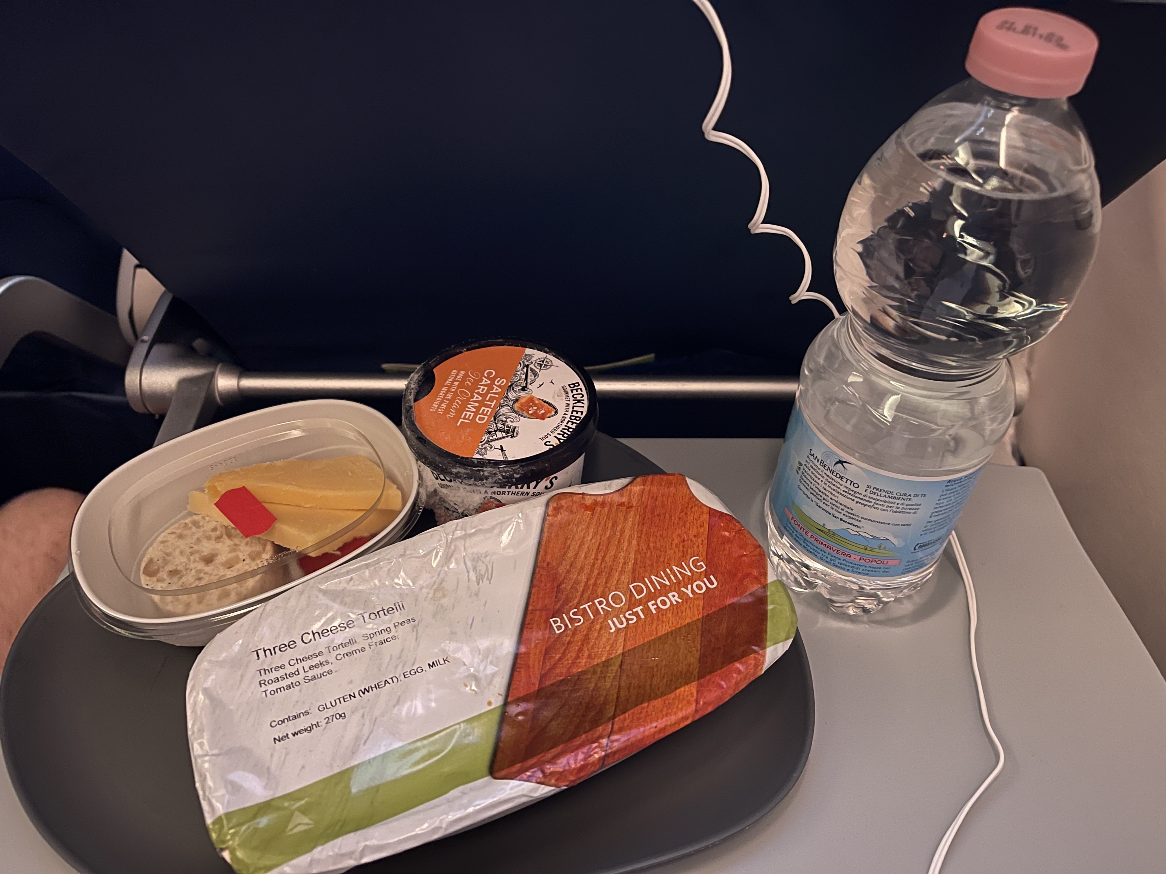 Once on the plane, the flight felt fast and we had one meal and a snack.