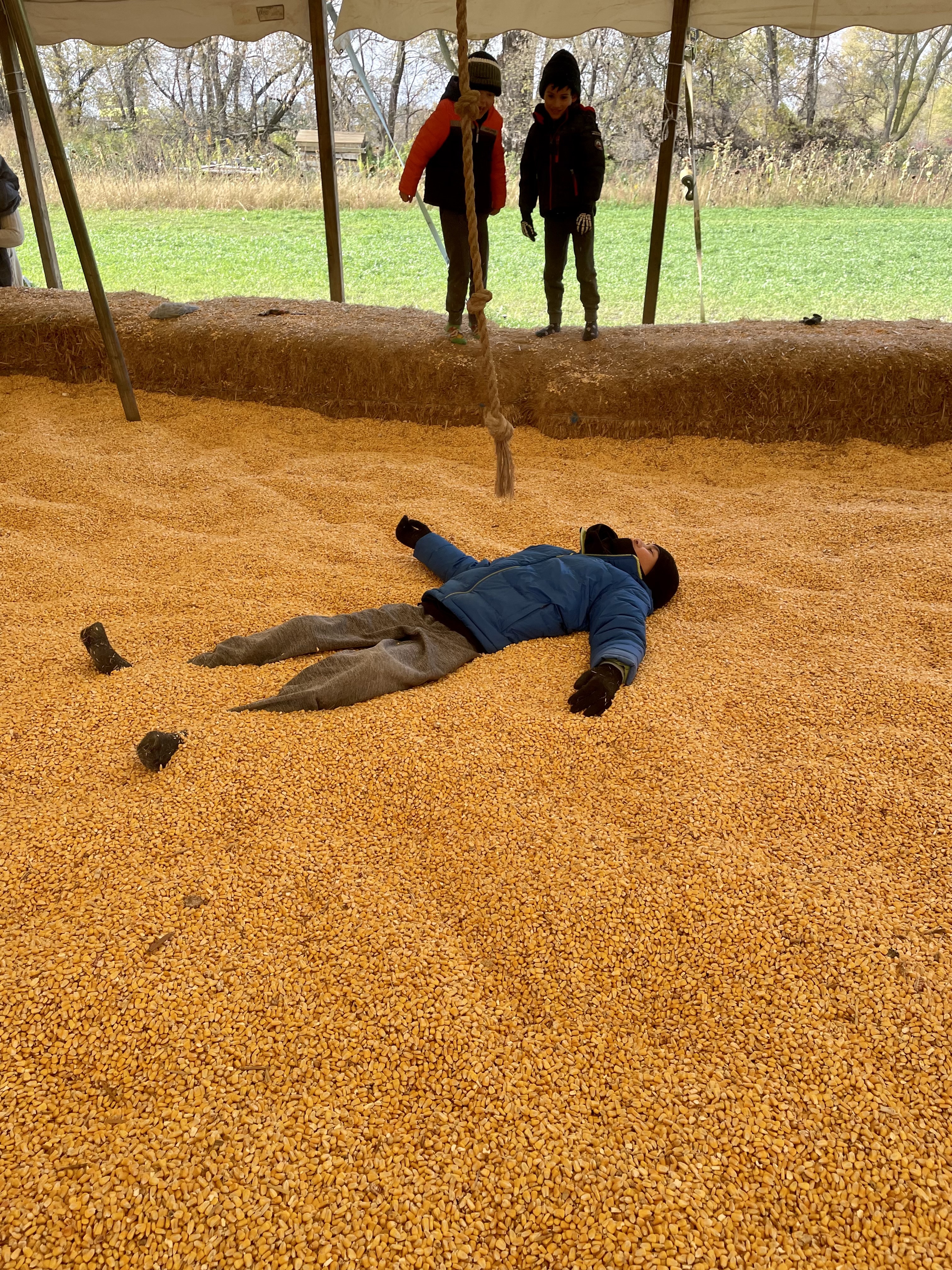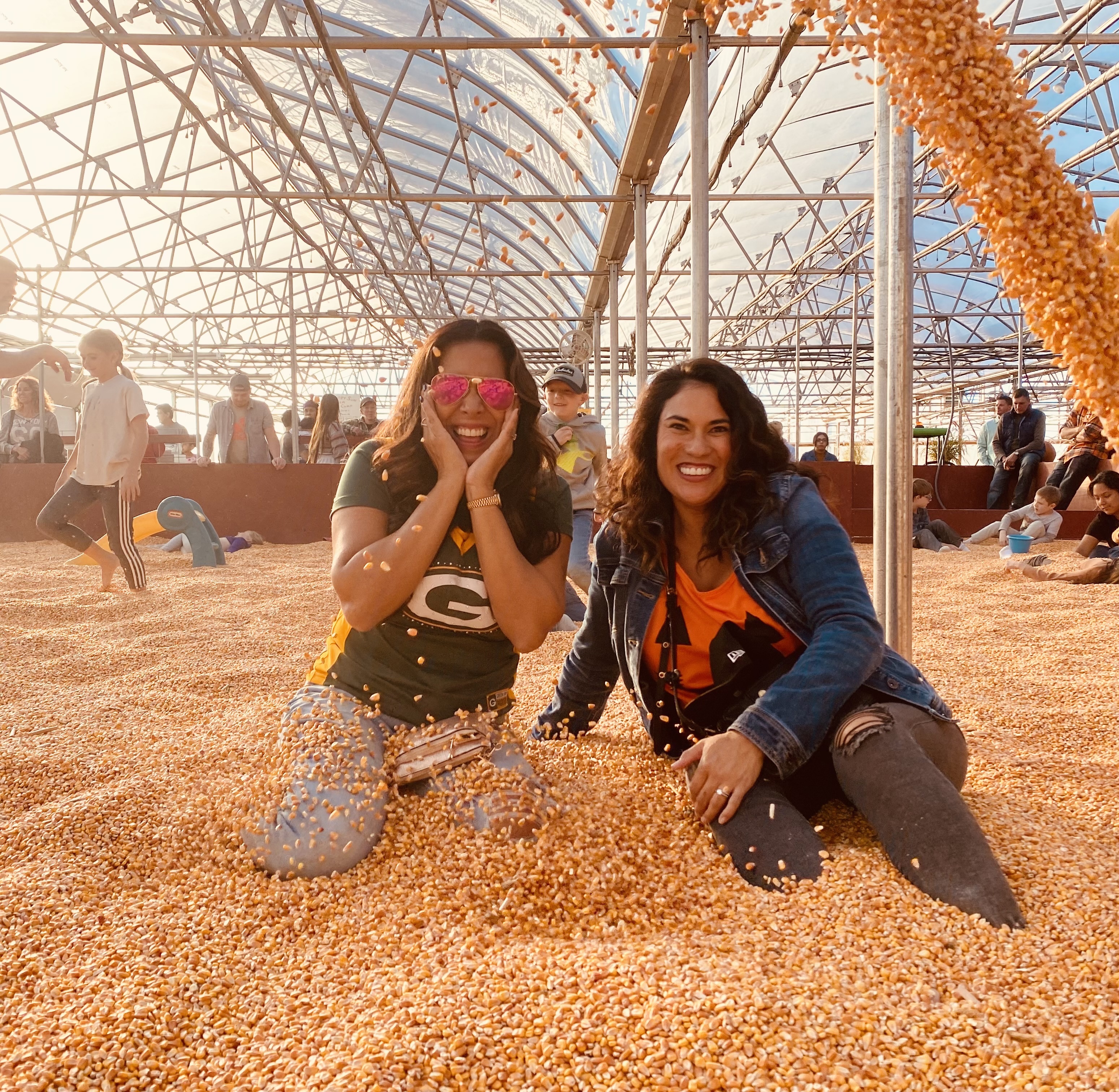 With my friend Gloria in the corn pit, *photo credit to her daughter Gisele, Dylan for throwing the corn, and editing and phone credit to Gloria