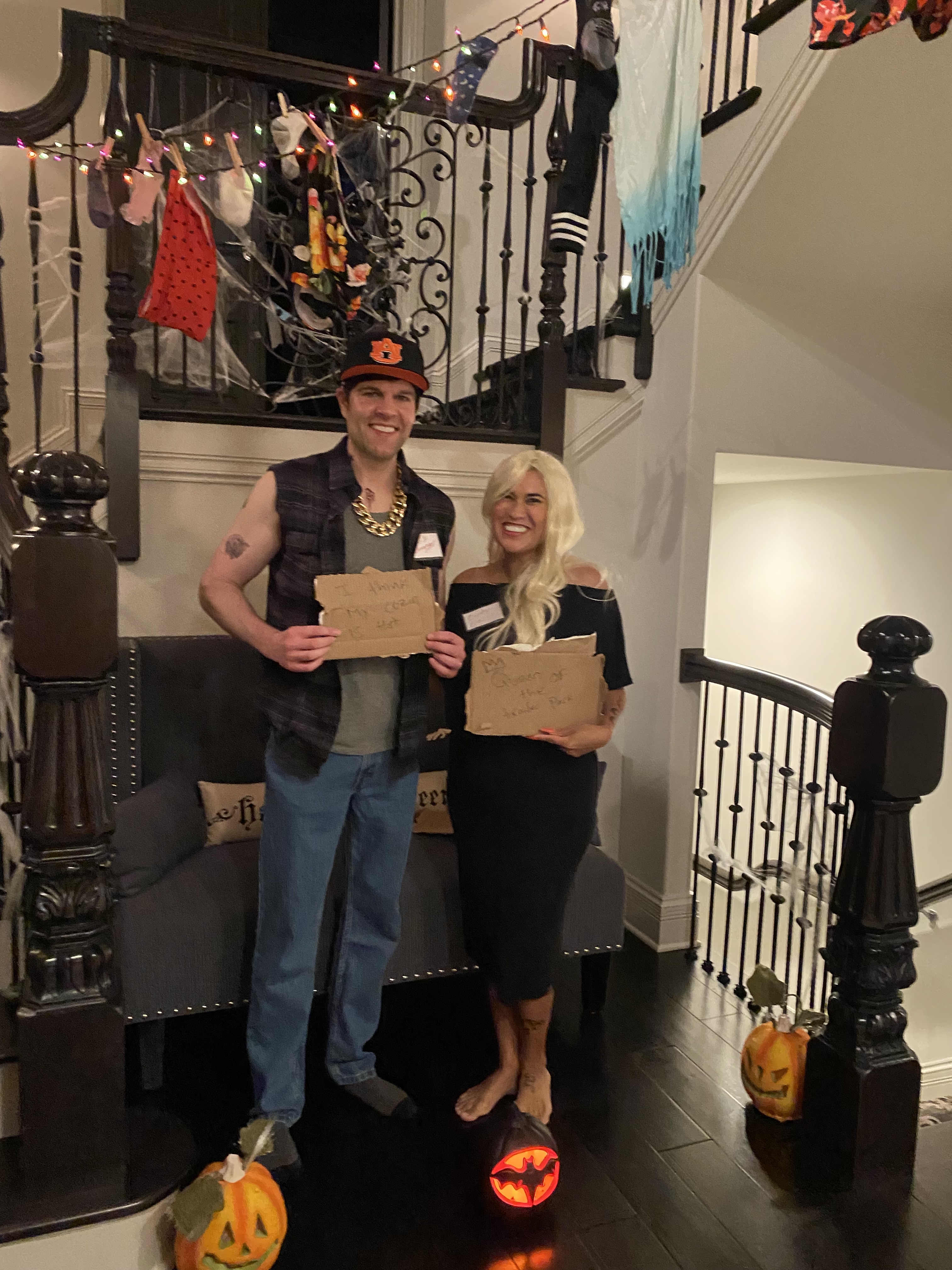 This sign is so cute and I went as a Pink Lady and Dan went in his skeleton pajamas
