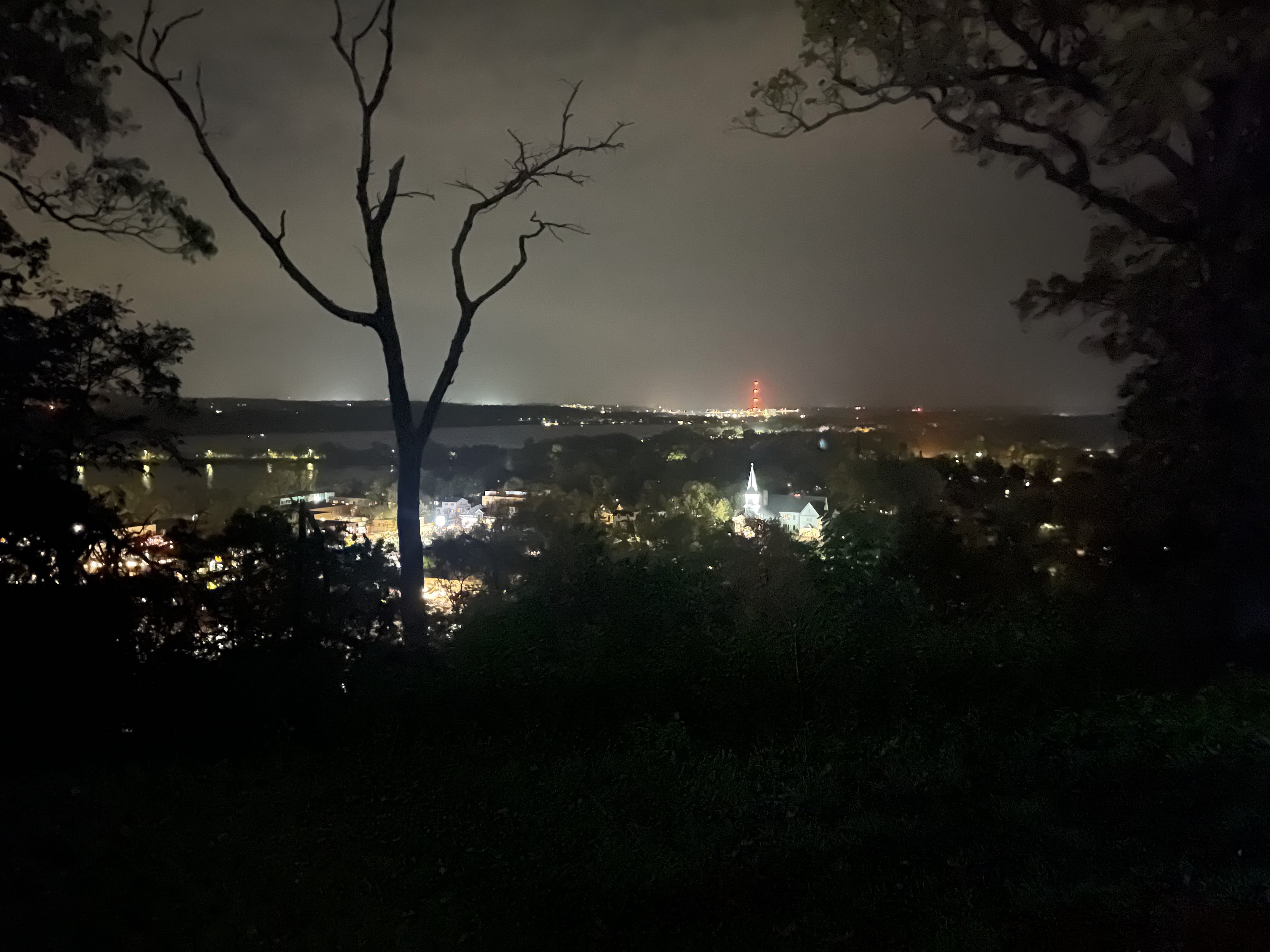 Beautiful and spooky night view of the city of Hudson