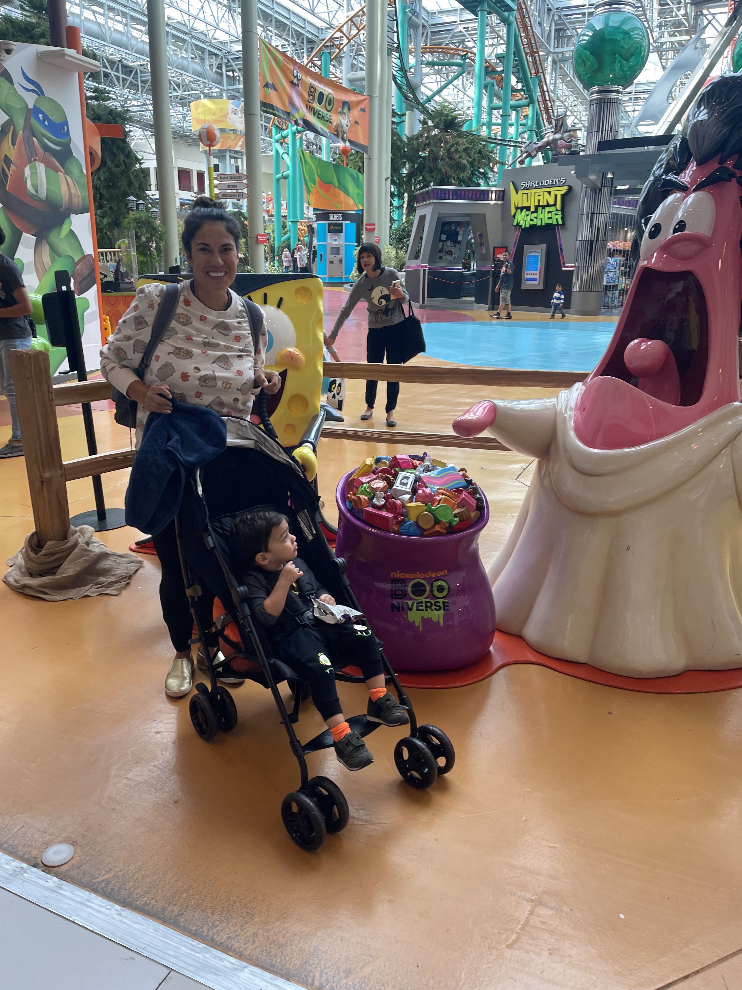 At Mall of America they have something called Toddler Tuesdays every Tuesday. You get discounted or free meals for your kid but the best part is that Nickelodean Universe offers $15 wristbands for toddlers to ride the rides from 11am-4pm. It is 1/3 of the price of the full price wristband so an amazing deal!! They also have a theme every week and this was their Trick or Treat event. I went with my MOMS Club friends this day and we stayed for 4 hours. The kids all had a blast and Scott behaved so well! We had a late lunch and then headed home for nap.