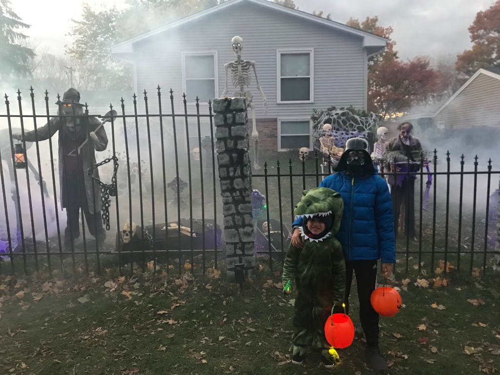 There is a neighborhood nearby that goes all out so Dan took the kids to trick or treat there and to look at the awesome decorated houses. They had a blast!