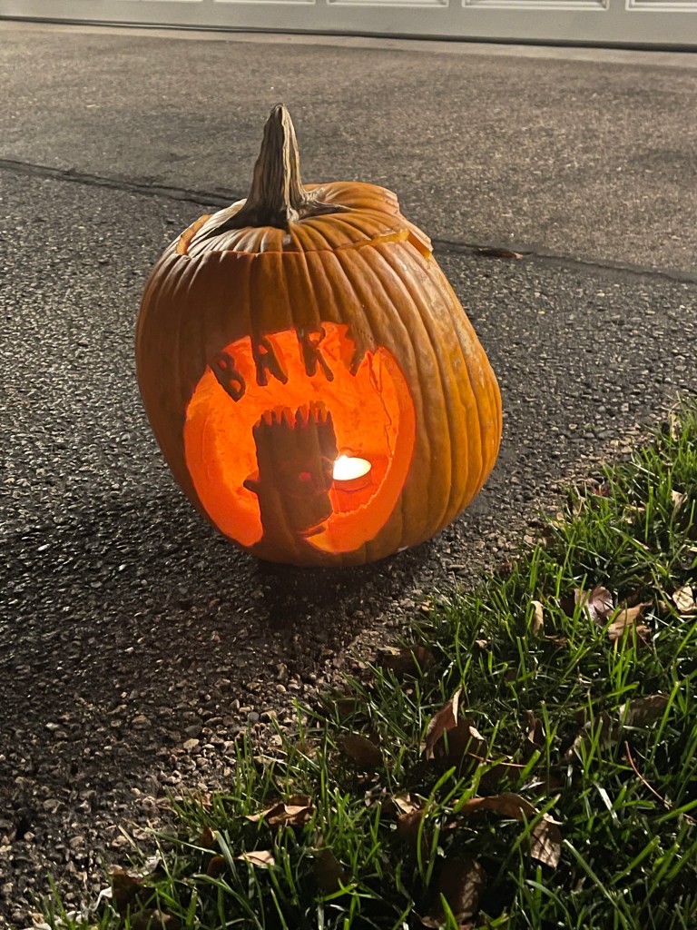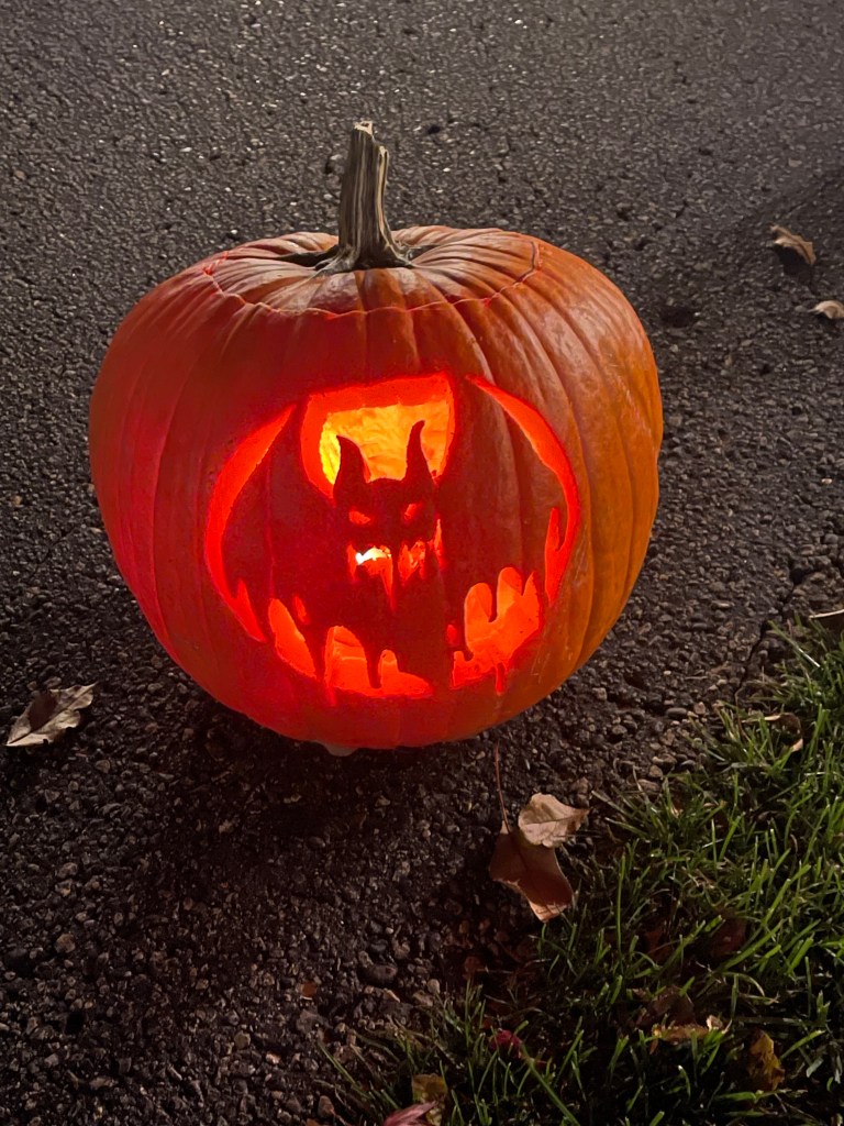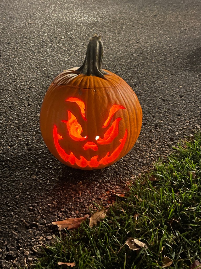 I was extremely lazy this year and just carved a basic pumpkin