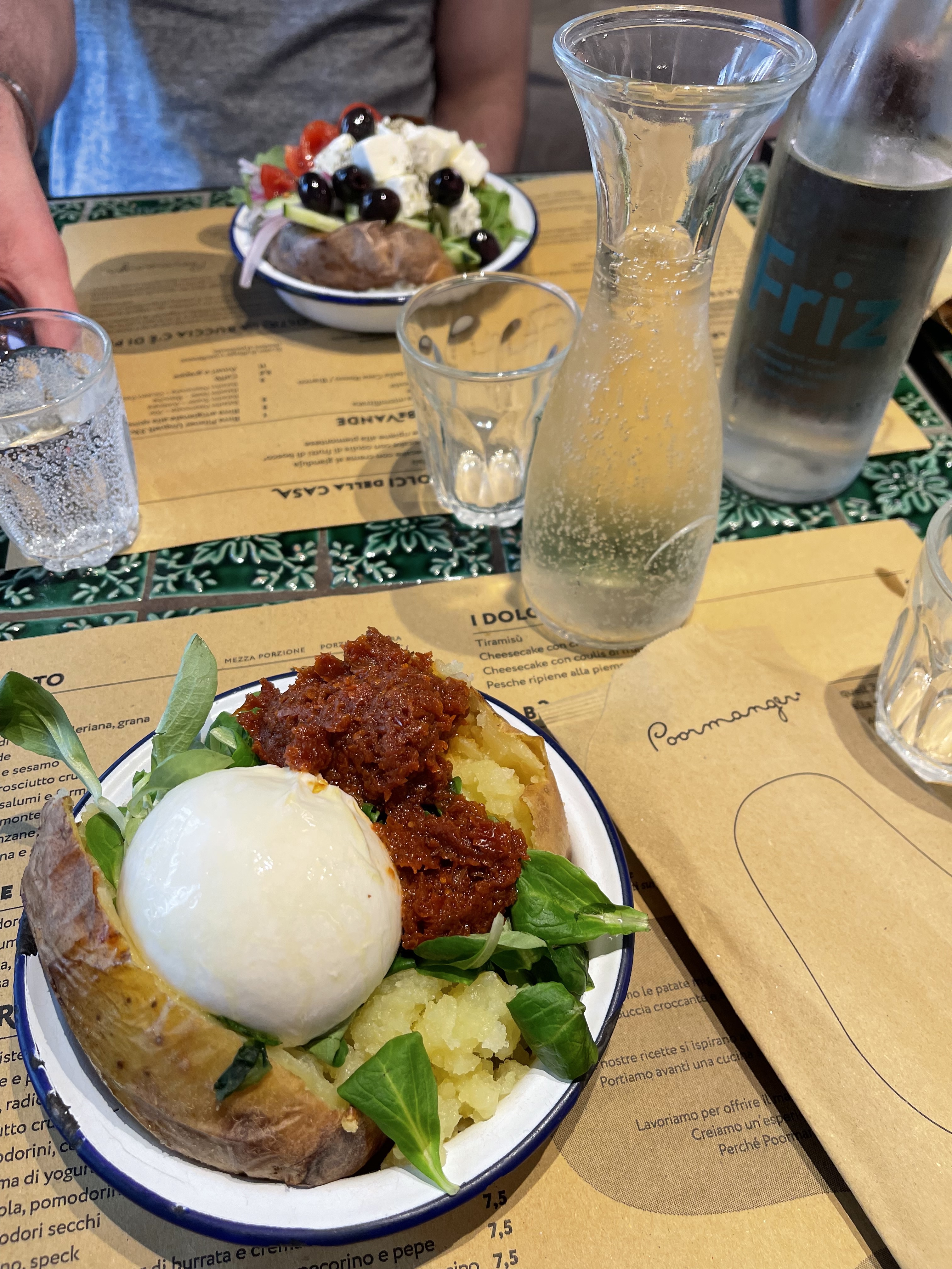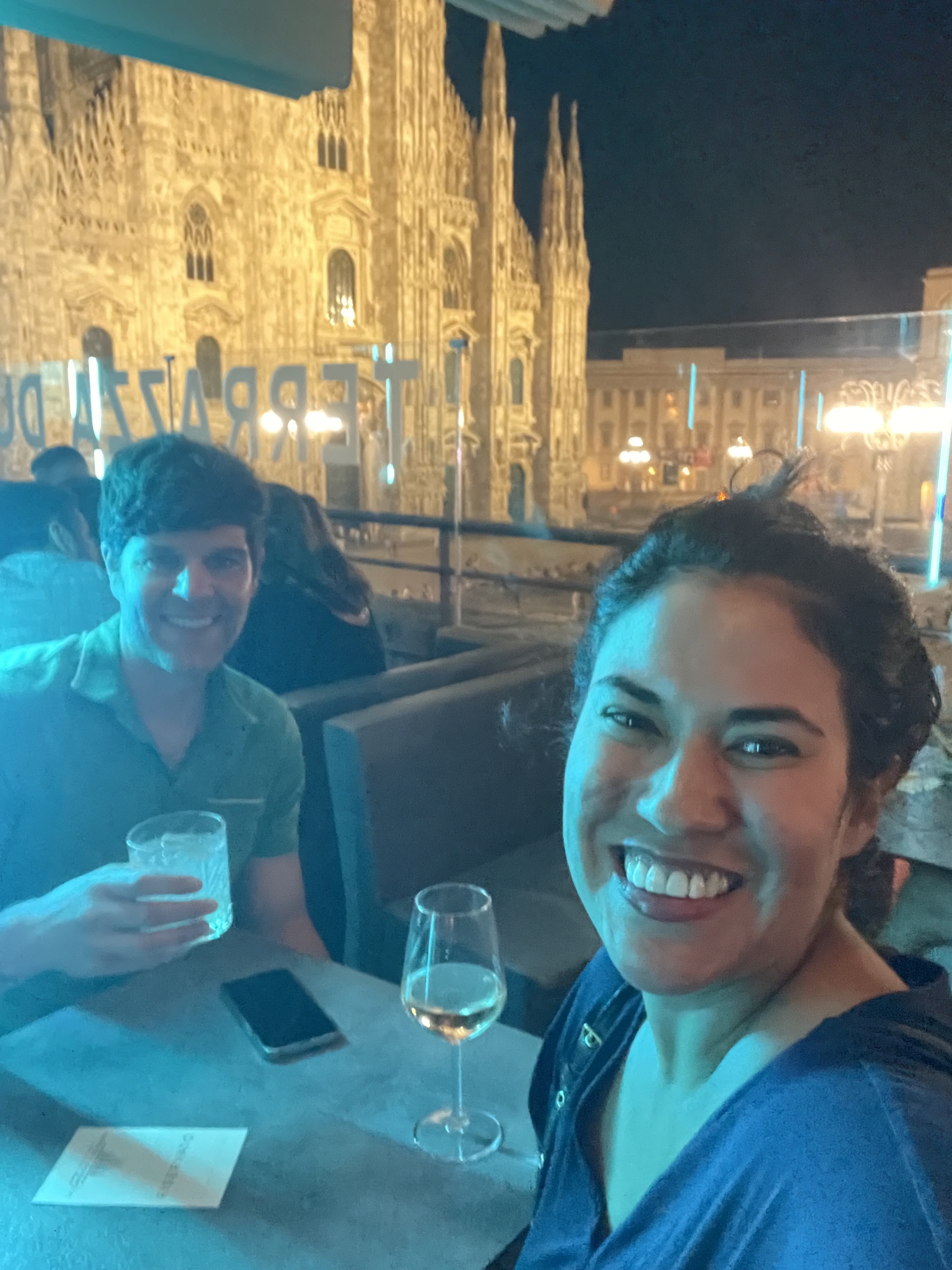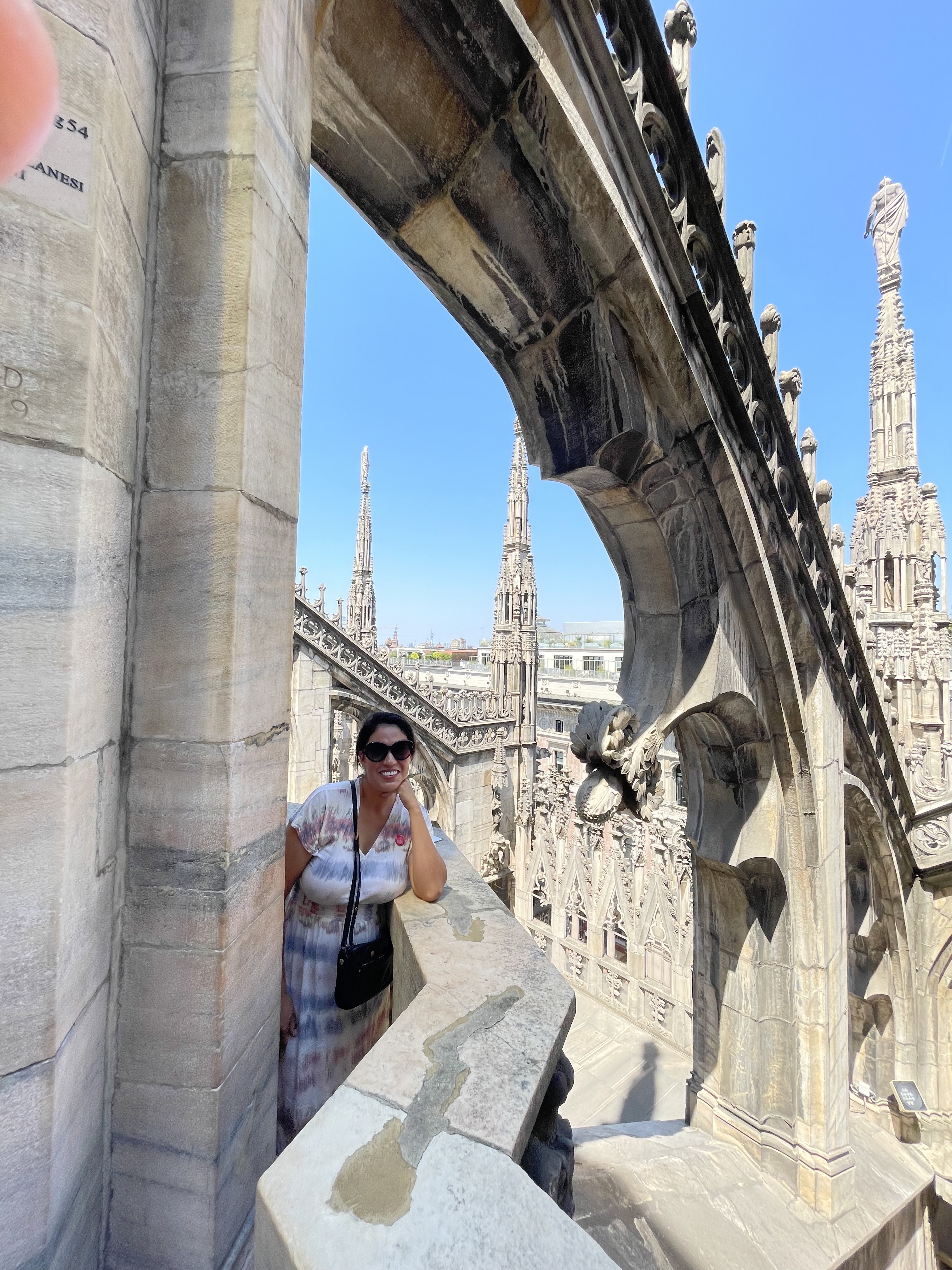 Excited and on the planeI am one of the few of my friends that loves airplane and hospital food, but this United dinner was gross. This is coming from someone who will eat anything that is not spicy I was grossed out by it. I still ate it but did not like it.Getting close to Milan and our snack, yogurt was fine, biscotti was blahOnce we got to hotel, we changed and ran out to see the DuomoThe shopping district, I am well aware I take terrible photos lolol. I really just like taking pictures of the architecture and the stone work on buildings. Here I loved the arches and the glass ceilingThe murals were neat tooI love seeing things like this on the floor and it reminded me of Sullivan’s work in Chicago so I had to take a picture of it. I love how you can find art looking up or down.Our first meal in Milan! This spaghetti with clams is my very favorite and anytime I see it on a menu I order it. This cheesecake was so light and fluffy I ordered another one after finishing this oneWe got tickets to see Da Vinci’s Last Supper. Apparently it was an experiment that he did with tempura paint on dry plaster and I love art so I had to see it with my own eyes.It did not disappoint and it was beautiful!This was across from it We then walked over to the castle-Castello SforzescoIt was hot this day but I enjoyed walking around and of course had my handy fanI think Dan hated me at this point because I wanted to see the Egyptian Museum they had there, but it was super late and hot. He caved after this snack but my phone died and I didn’t want to push anymore buttons asking to use his phone to take pictures so I can only say you must go to the museum if you are in Milan. They have pages from the actual Book of the Dead ahhhhhhWe had a food tour scheduled this night and this was the first stop. This bar was really cool because every 6 months they change countries and we happened to be there when it was the US’s turn. They played oldies music and had lots of American decorations around the bar. I love food tours because I get to go to places I otherwise would never imagine going My cherry bomb drink was so good and Dan really liked his Lemon drinkOur next stop was a wine bar and omg it was so good! We had a cheese board here and it was one of my favorite stopsNext was this potato place that had the most interesting toppings. I love baked potatoes so I was so excited to be here, mine had burrata and some tomato topping that was sooo good. Dan got a Greek potato and he really liked his tooOMG, I so wish this was not the last stop because this sandwich was the most amazing thing I have ever eaten! We got an eggplant parmesan sandwich and it was literally the best sandwich I have ever had in my life, pictures of course do no justice and just seeing this picture my mouth drools from the delicious memory. Last stop was of course gelato Our last stop was by this canal and it was so pretty and serene I loved how they had so many bars along the canalThey even had love locks so of course we got one doneIt was so hot out but we were so happy lololPS every time I see the lock I giggle at how Dan wrote his own name looking like Don lolololol After our food tour we were stuffed but I had to have a drink along the river. Thank God Dan goes along with so many of my shenanigans and we enjoyed a very tasty drink and really liked the ambiance of the night life Milan had to offer.The Duomo of course so beautiful We had a day trip in the morning and since the Duomo was literally next door to us it was easy to get great pictures I love coffee art Our day trip was to Lake Como and Bellagio Love how unique these buildings were in Lake ComoA light lunch in Lake ComoHiOn the boat to Bellagio Little stairways all over Bellagio Duh, we had to drink again lololAnd of course eatWe were lucky to get a nice shady spot. Another hot day but I packed our fans so we were fineLoveHow pretty! On the boat Later at night back in Milan and of course eating againThe arch to the Fashion Shopping area right next to the DuomoWe ended up at a rooftop that night with a great view of the Duomo and fun dancing music. Trust me I felt so old but happy that I was able to experience thisThe next day was our tour for the Duomo, it started inside the beautiful church I am a huge Lord of the Rings fan and walking in immediately reminded me of the mines in The Hobbit when the dwarves and Bilbo go to the Lonely Mountain. Just so beautiful and breathtaking! Oh hi beautiful big stained glass windows They say 1 of Jesus’s 3 nails from the cross is up there were that dot is on the cross Just amazing views from the rooftop People were so nice and always offering to take our pictures They are doing an amazing restoration to the Duomo and I look forward to visiting it again and be in awe of all of its glory Love the stone work The little details are incredible This section hasn’t been cleaned/restored yet but still you can see the beauty I was awestruck when I saw this PeekabooAgain with the amazing details I feel like every church has these marble steps and I always feel like one step and I am going to tumble down so of course I had to take a picture and tempt fate This salad was just so fresh and good I love bubble tea and I base them all on how good they cook the tapioca balls. These were hard and not chewy at all. The pineapple drink itself was ok but I was sad the boba was not good and it was a paper straw which I get to be more eco friendly but it got so soggy so fast and almost impossible to suck up the bobaThe start of another day trip to the Swiss Alps and a very scenic train ride through the Alps STOP!!! This was taken by me on the bus and why is the Swiss Alps so beautiful? I am by far the least nature girl you will ever meet and I was already talking to Dan about visiting here in the winter some year because it was just so beautiful and I want the kids to experience skiing here.A famous chocolate shop in St Moritz . It was really ritzy here and e